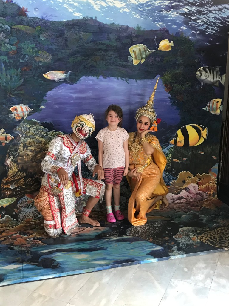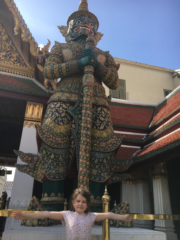 Mummy and I went into the emerald buddhas temple and we had to cross our legs because if our legs were flat on the ground it was disrespectful to the emerald Buddha king. After we looked around a little more we got a bus to see some traditional dancing and music.