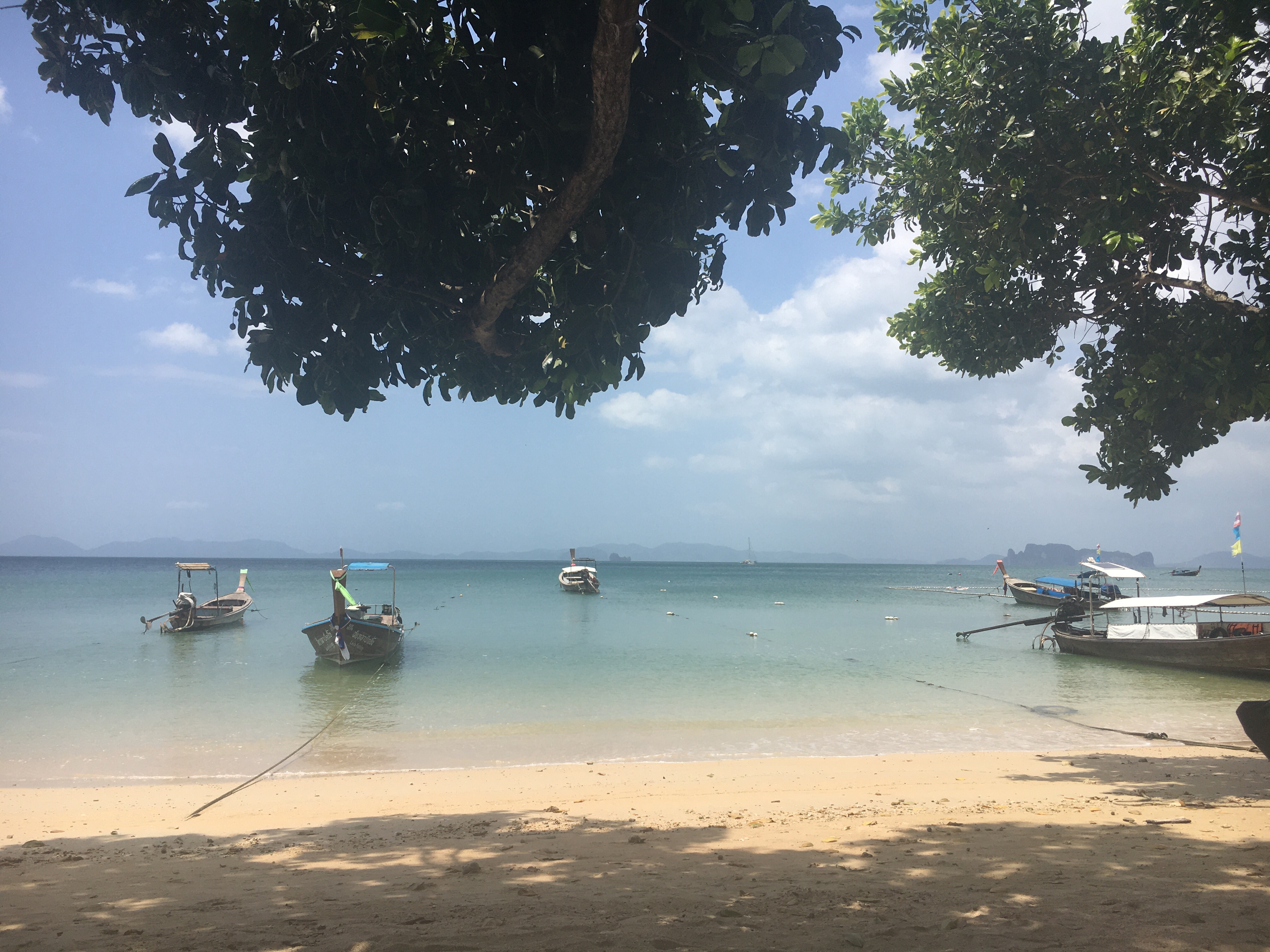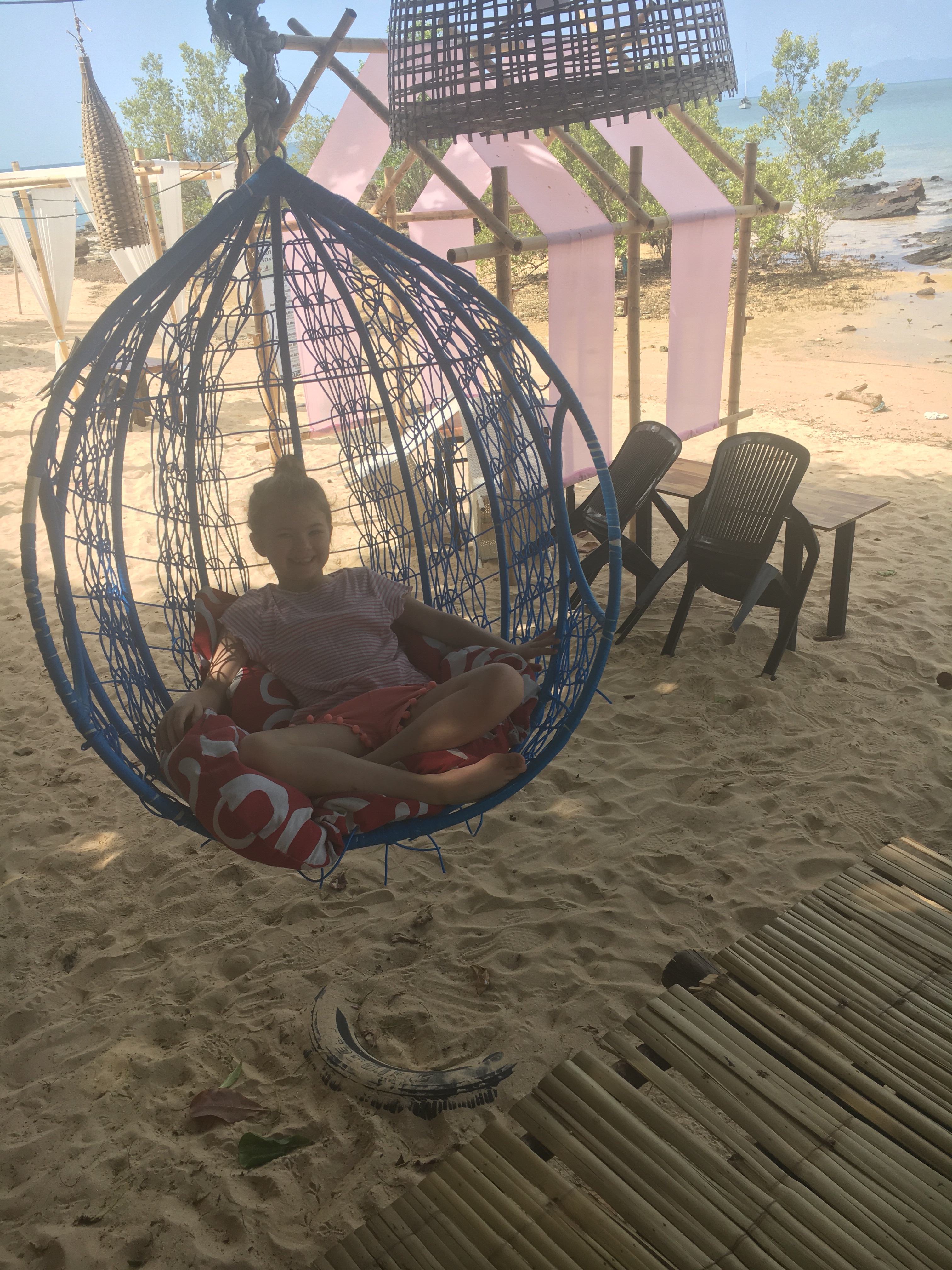 Today we went Back to Khlong Muang. We had breakfast and I had toast. We caught a Long boat back to the ferry terminal and we were going to walk to their Phi phi viewpoint. I was very tired so we went to a bar instead and I had orange Fanta. we caught the ferry back to our hotel but I fell asleep on the ferry. We Chilled at our hotel and then walked along the beach for dinner in Jamaica bar. The Sea was very close to the restaurant tonight with all the long boats parked at shore because the sea is so rough.