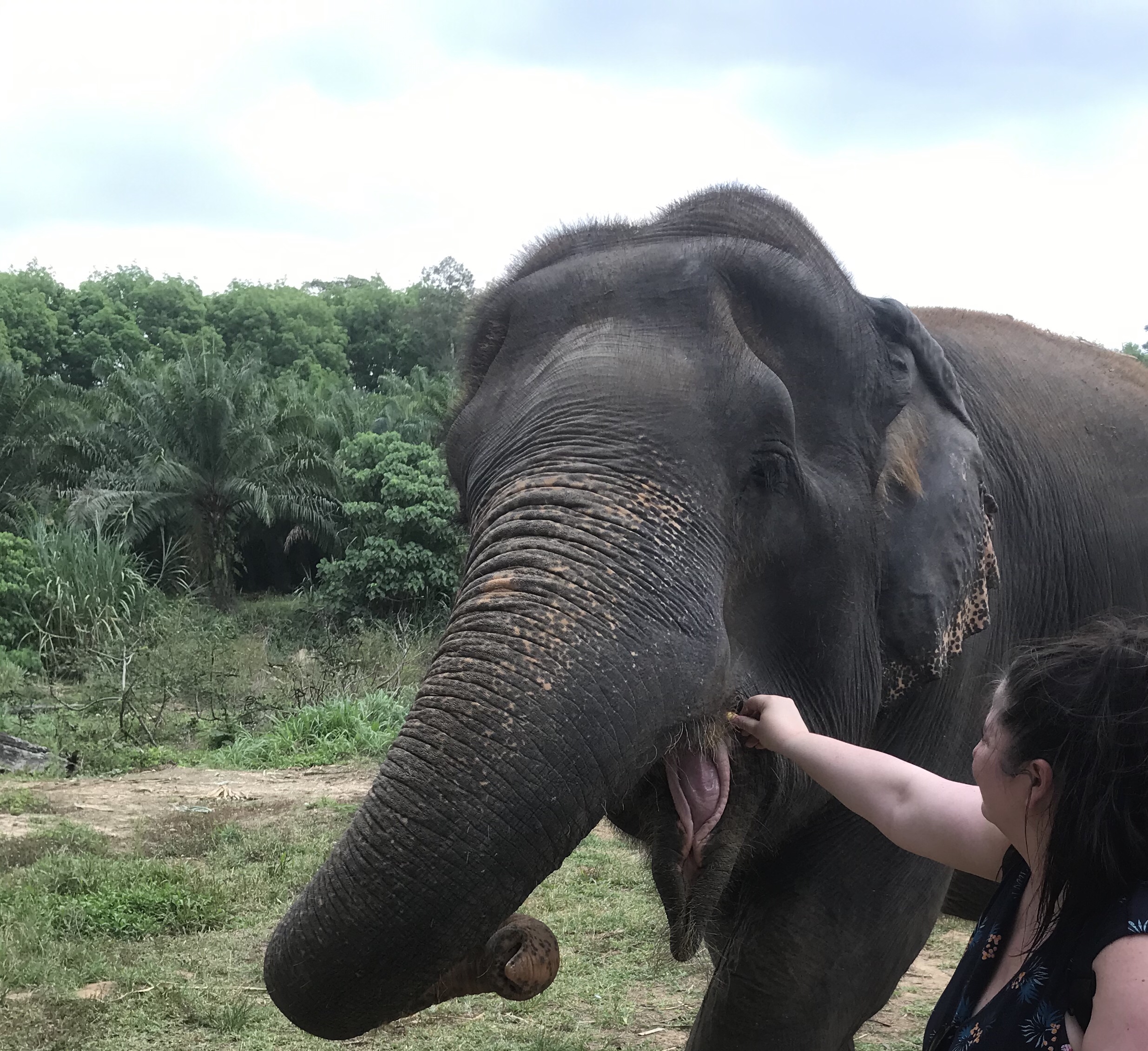 We wiped mud on their bodies and their trunks and then they had a wash in the river and I found some friends and I played with them and swam with them.