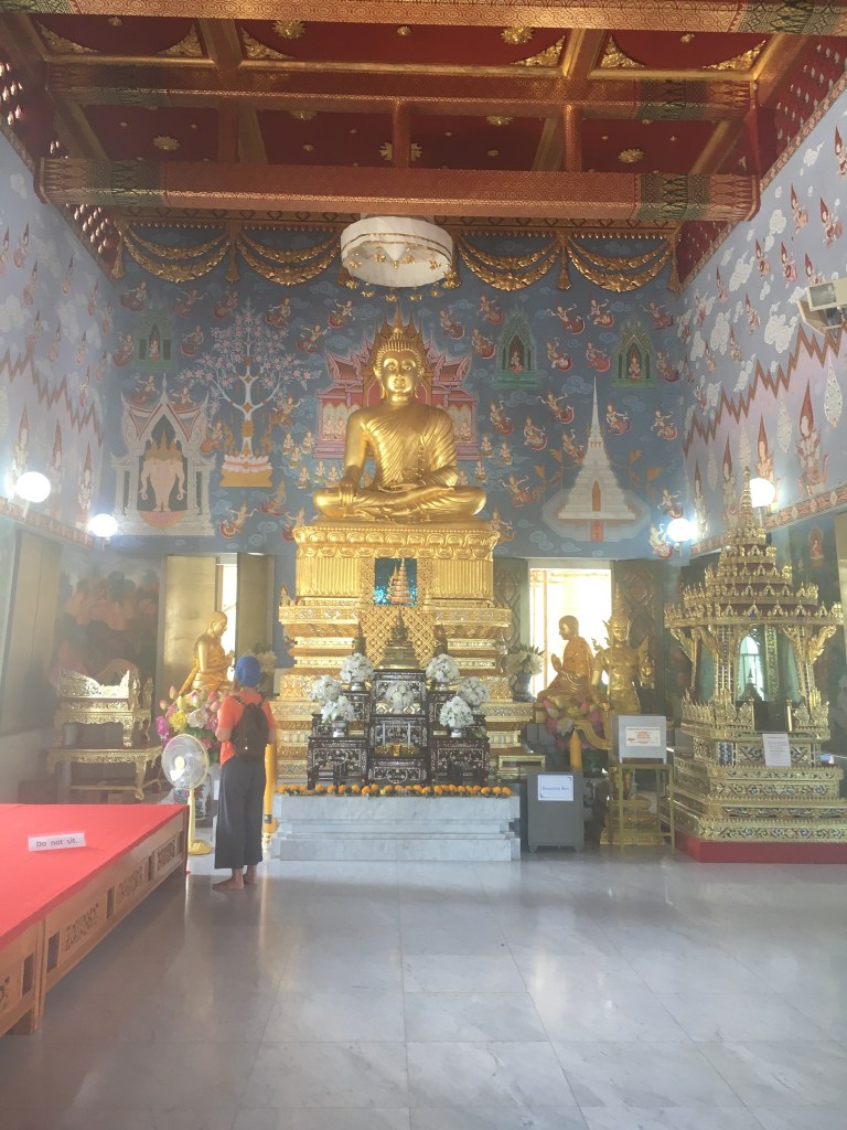 We then got back in the car and drove to Krabi town to have an Italian meal at Unos. We shared some salamis and cheeses and olives then I had a pizza which was yummy! Then we visited a little temple but not for long because mummy didn’t have her knees and shoulders covered and this isn’t allowed in Buddhist temples. Afterwards we drove to Au Nang to visit an art gallery but it was closed so went to a bar instead and I had a banana smoothie and wrote my postcards to Isabella, Grandma and Grandad and Kath and Cliff.