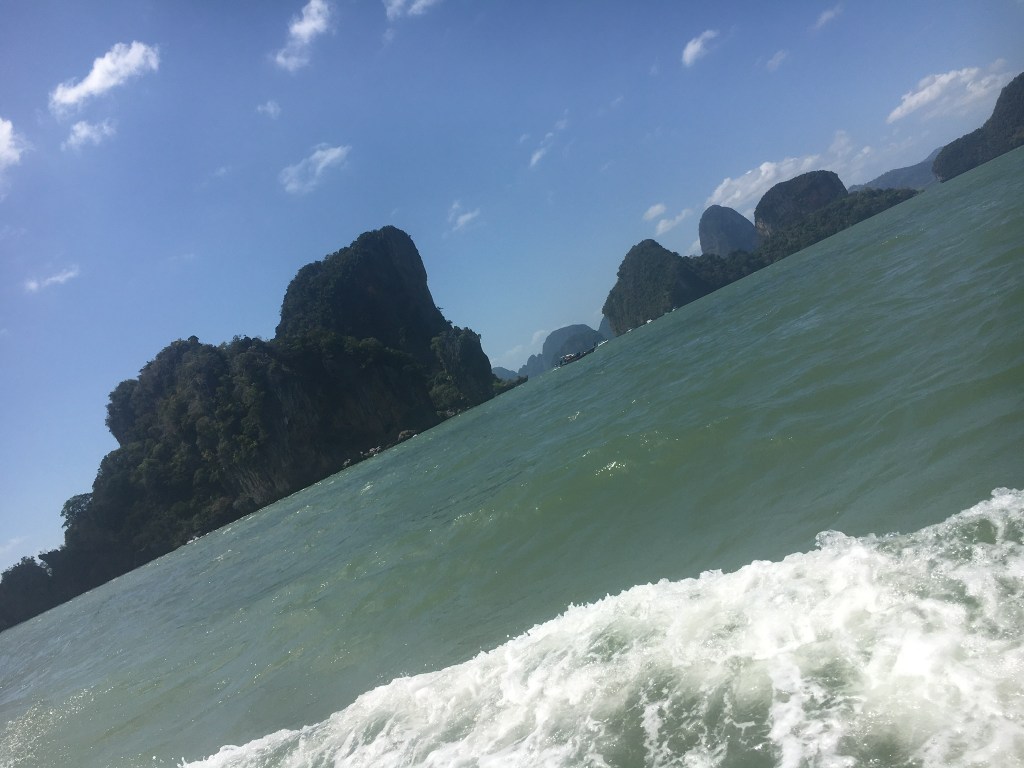 We got up early to get a minibus 🚐 to a long boat 🚤 which took us to James Bond island