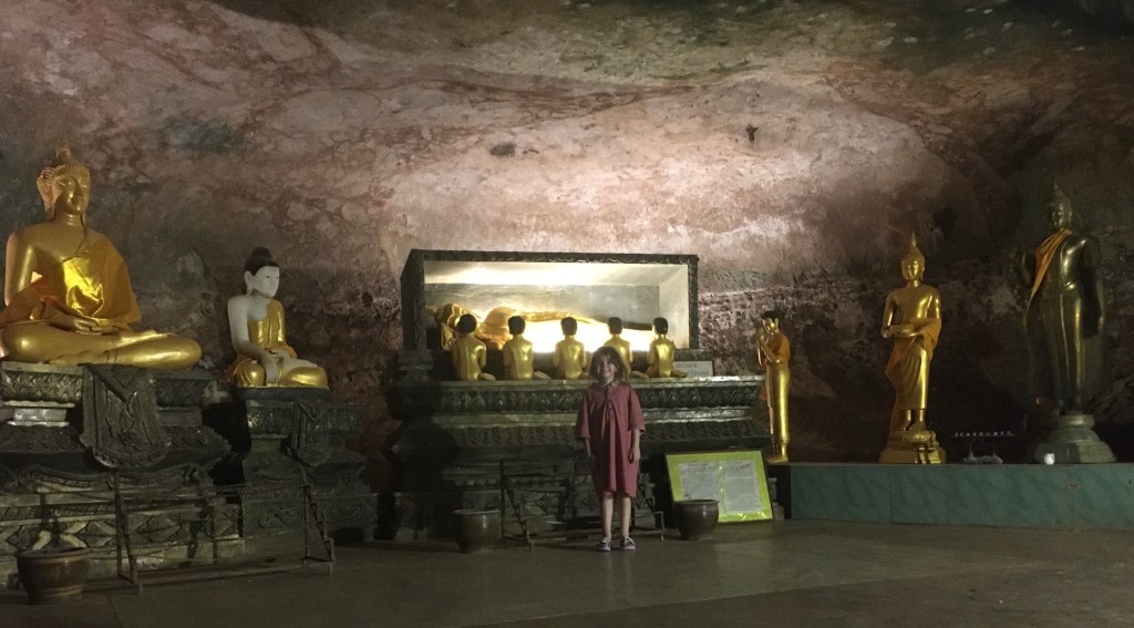 After that we went to a tiger 🐯 temple which was inside a cave.And I found a upstairs Buddha and I prayed and lit a candle 🕯. Outside of the tiger temple 🐯 there were monkeys 🐒 and we fed them bananas 🍌 and corn 🌽and we had to catch our minibus 🚐 so we gave the rest of the monkey food to a little girl 👧 who didn’t have any🙂