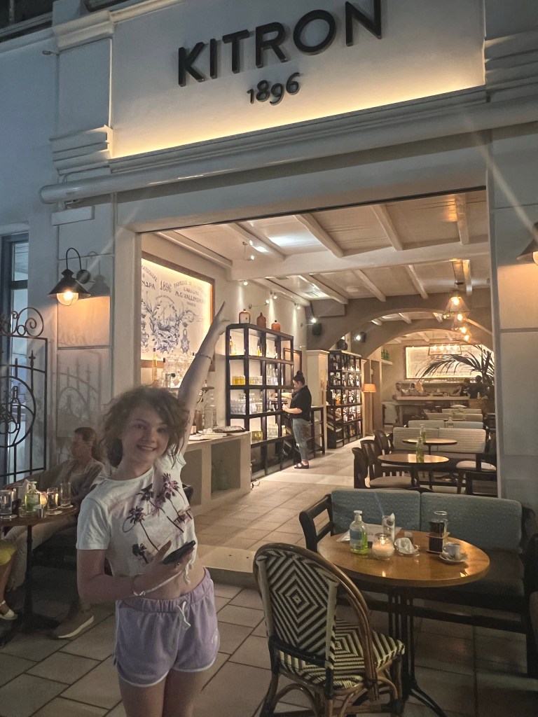 After that we walked back to the apartment then went for a short walk into chora of Naxos. Then we found a cocktail bar, where we met Kath’s and Cliffs friend! Shout out to Kath, Cliff and Dimitri!! 🍸 🍹 I had a fruit punch, dad had a Long Island ice tea and mum had a summer time cocktail. I ate all the melons too. 🤣🤣
