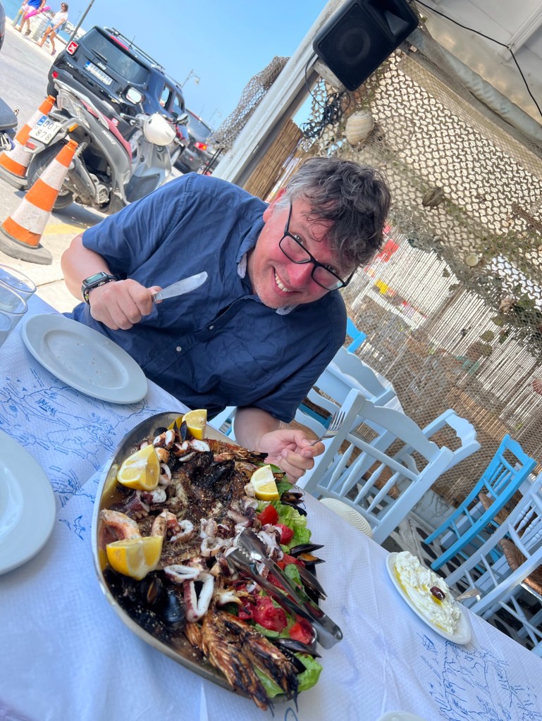 For lunch we shared a fish platter. I tasted mackerel, squid, octopus, mussels and giant prawns. ( most of them I did not like )