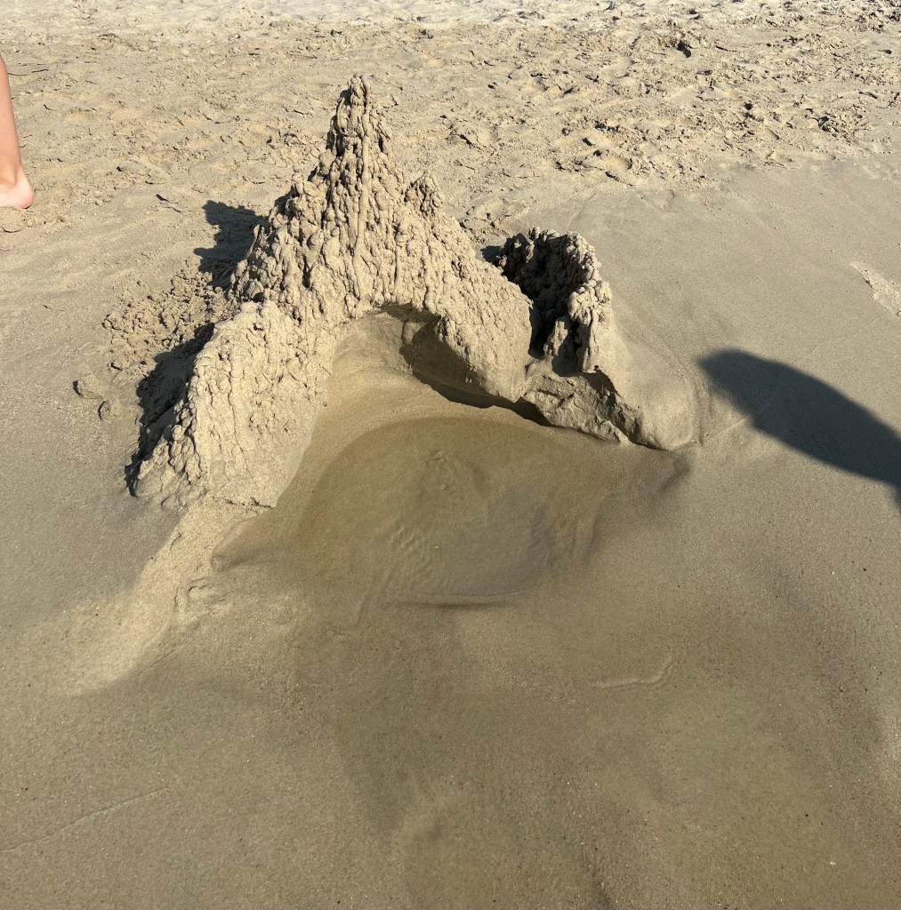 We had another beach day, big big waves! I built a castle that had a cave and a moat.