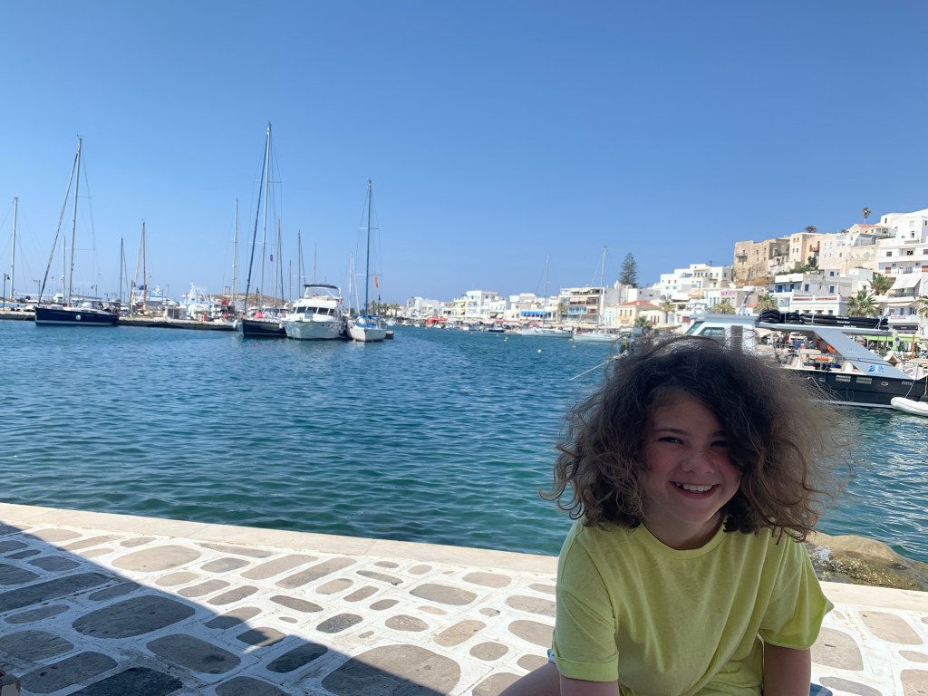 We had a chill day at the chora and the harbour. We went to a bar and played some fun games, like Uno and Head bands.
