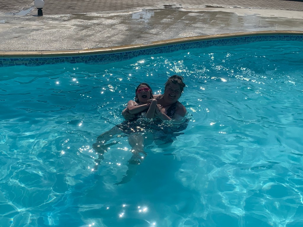 I overheard some girls speaking English but they were Canadian, one was 10 the other was 7 they were sisters we went on slides doing dances and screaming. And Sabrina got stuck and I came down and flew past her! It was funny.