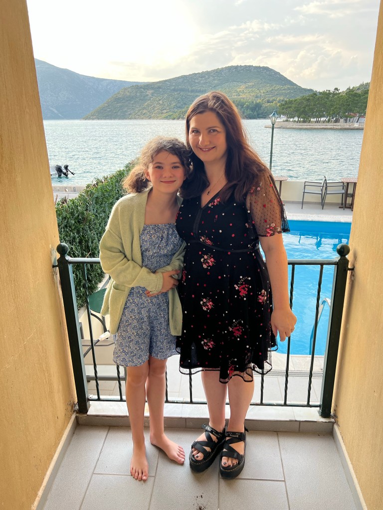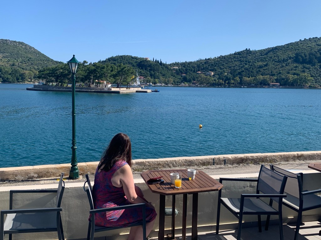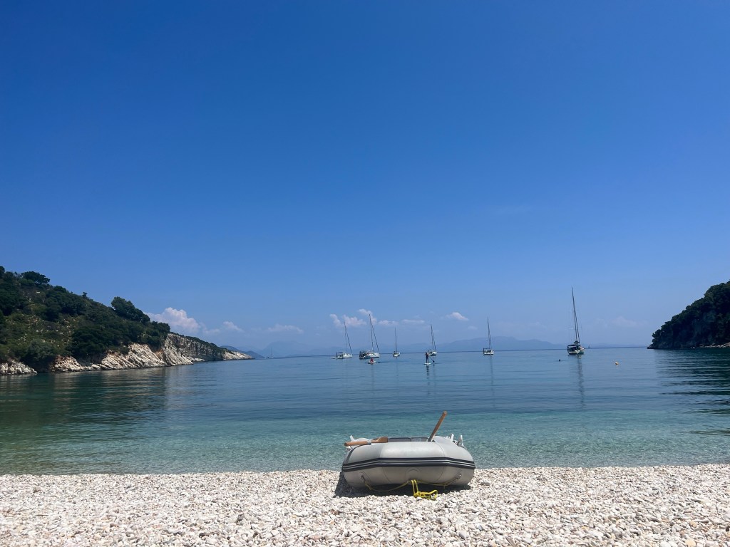 This morning, we got up and had a bit of breakfast together. After a while, we went to the Filiatro beach and dad had a swim. The view of the mountains were beautiful behind the ocean, since it was sunny and the sun beds were black we lay down on the beam bags which were quite comfy. Then we went for lunch at Kirki restaurant on the beach, it was nice!