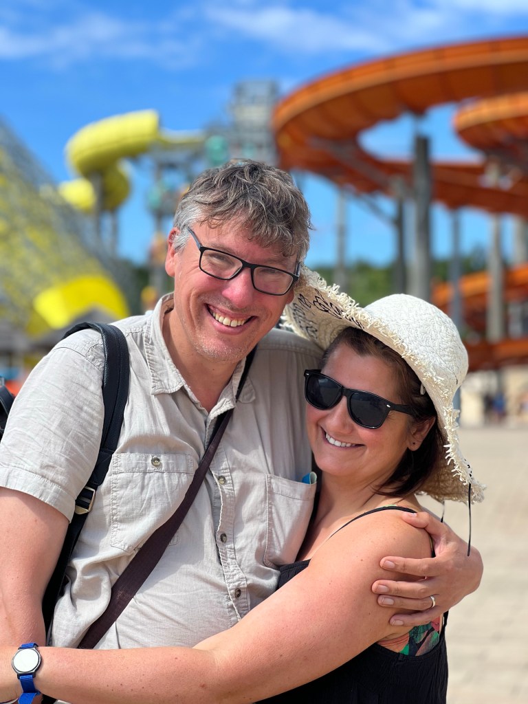 Me and dad went on our first ride which was the rocket one, you went in a tube and the floor dissapeared and you dropped down to the water. The next one was the big orange one! It was fast and very long. It was so much fun! There was also a crocodile pool with a bar inside of a cave WITH WATER IN. So a pool bar, I got a mocktail.