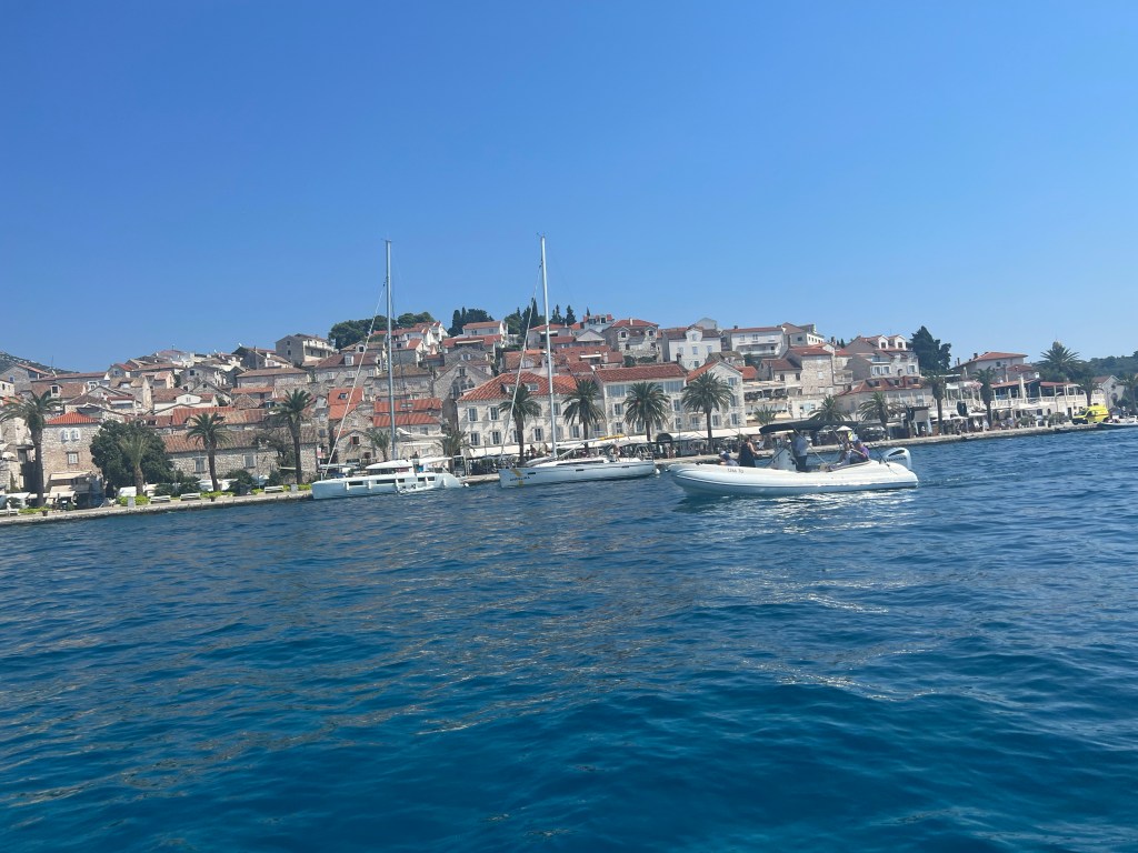 We went for breakfast and it was very nice, we got 5% off as well. We went to a beach you could only see by going on a boat, it was salty so it hurt my 3cm deep cut on my toe. 🙁 Our 3rd stop was to the island of Vis, where Mamma Mia 2 was filmed!!