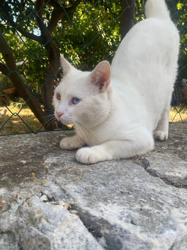 We walked back to the car park and I saw a cat that had heterochromia(two different coloured eyes).