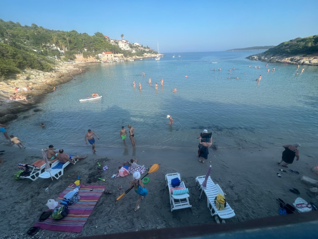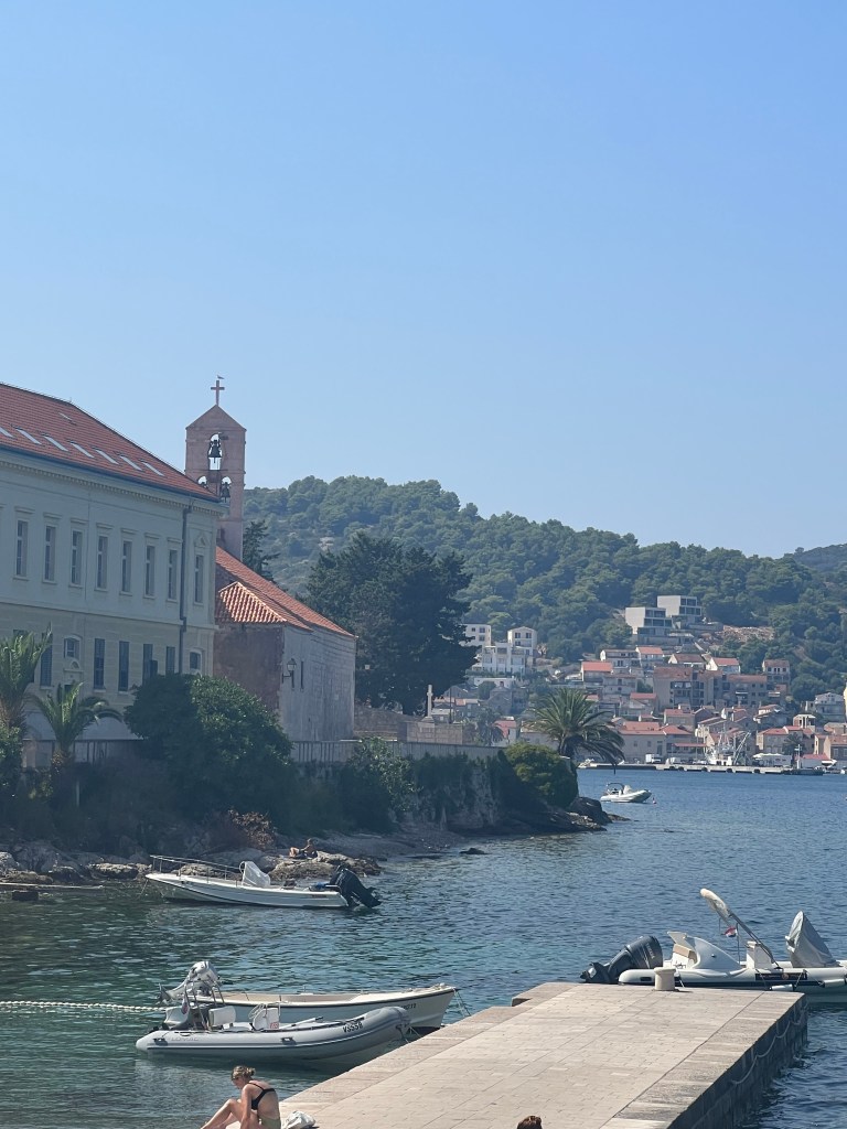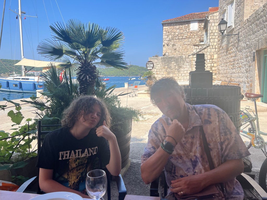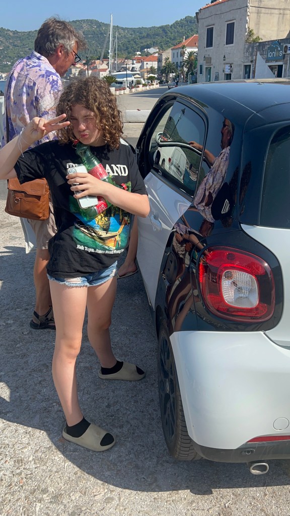 We drove to Komiza and I got a new T-shirt and we got a drink.