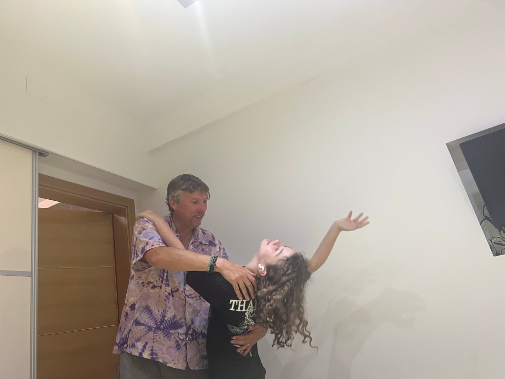 We had chocolate and marmalade crepes for dinner at the apartment and then had a 3 person party, where we took turns choosing music and dancing.