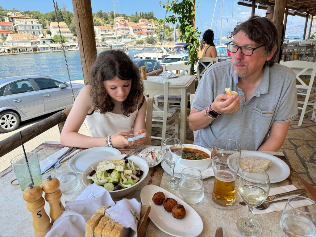 Today we went to get lunch at a place called Tagernaki. We’ve been there before and it still has the best tzatziki. I also like the butter beans in tomato sauce but I don’t like the tomato and feta balls.