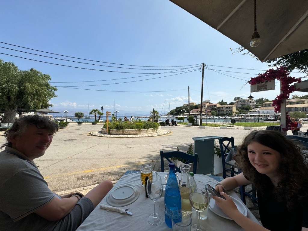 We chilled out until it was time for gyros again . When we came the man said literally to us ‘Pork gyros extra tzatziki and a souvlaki stick with chips?’ . Literally remembering our exact order because we came so many times for dinner, Dad thinks the gyros there is the best he’s ever had. We ate our gyros until it was ice cream time, the boxer machine is broken because of drunk people putting sticks and plastic cups into the coin inserter thing