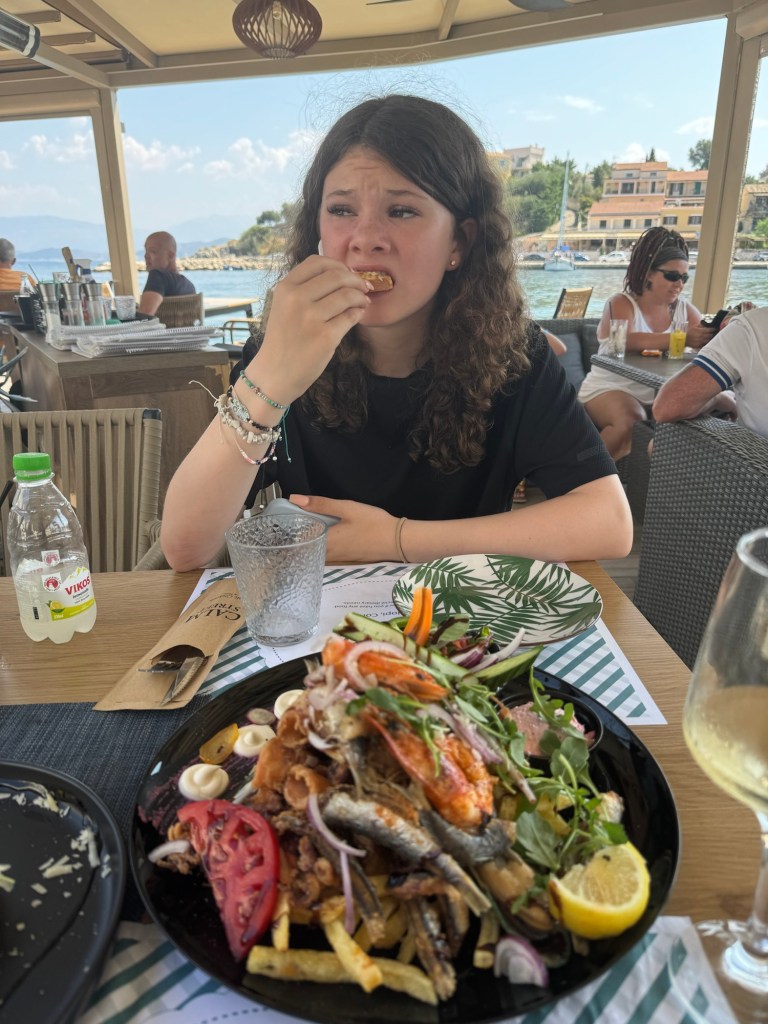 Today we went to get lunch at a place called Wave bar and had some really lovely food. I ate all the cheesy garlic bread and tried some calamari and other fish, the tzatziki was a 5/10.