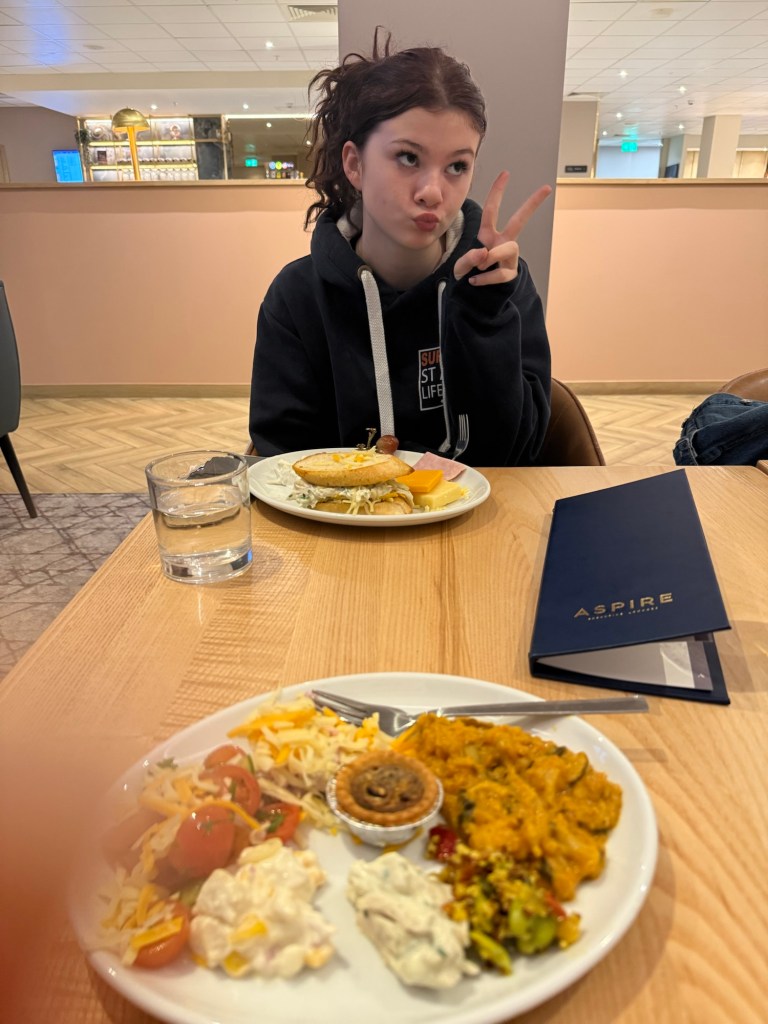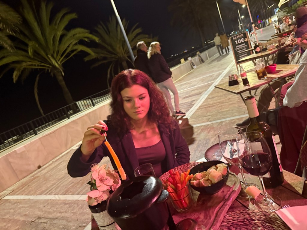 I then fake tanned and got ready to go get dinner, we got an uber but dropped us off at the wrong place so we walked along to another place called ‘La Mar’. Me and mum shared a Caesar salad and cheese fondue, then brought back some lasagne for grandma.