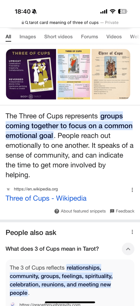We walked back and I got changed into some comfys – then got a tarot card reading off mum.